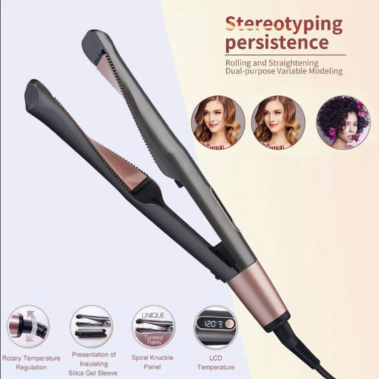 Rizador de pelo profesional 2 en 1, plancha plana de cerámica